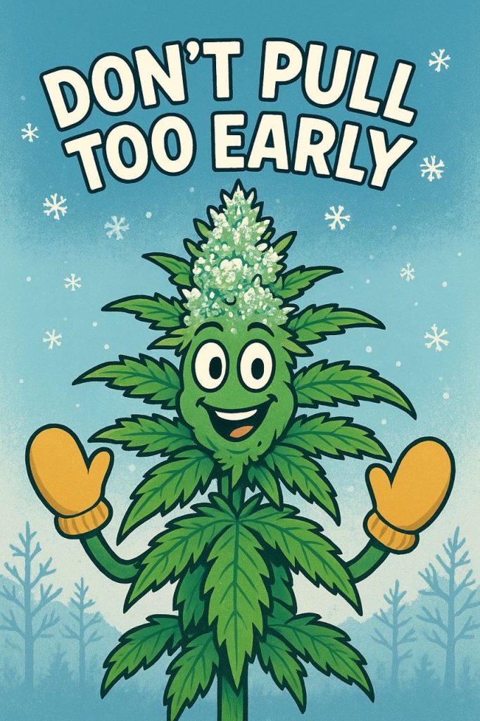 So take it from me, Seymour Buds, your friendly neighborhood grow philosopher: wait it out. Bite your nails, pace the yard, check the weather app like it owes you money—whatever you gotta do. Because the difference between pulling early and waiting for frost is the difference between smoking decent weed and smoking weed so frosty you’ll need mittens just to break it up.